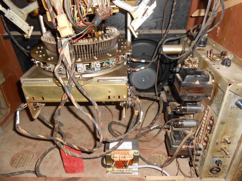 Alles wat nodig is om een betrouwbare jukebox te maken is gedaan. Revisie versterker, luidsprekers, element en naald vervangen, reinigen en smeren van mechanica etc. etc. Het stereogeluid is overweldigend. Diepe bas en een mooi gebalanceerd geluid. Maar ook de TL verlichting vervangen voor LED voor weinig tot geen onderhoud en laag energie verbruik.