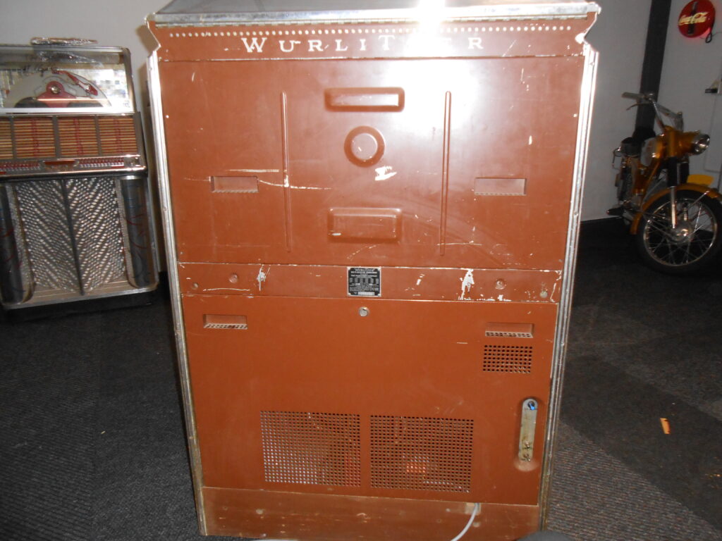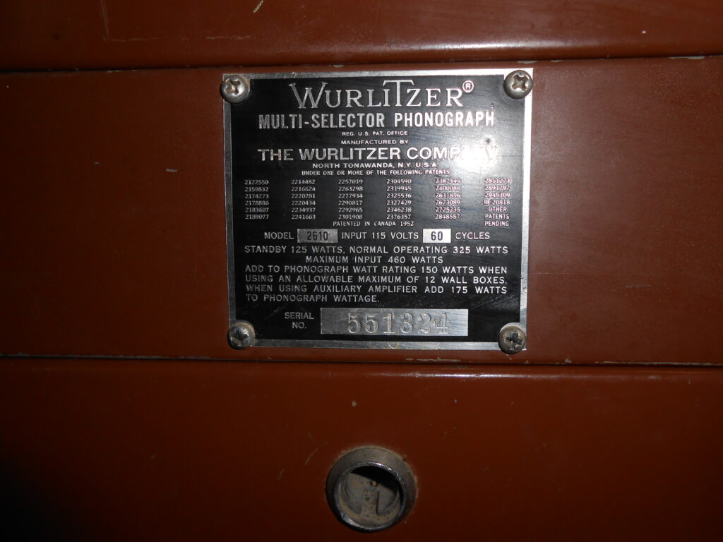 Wat een plaatje! Deze Wurlitzer 2610 uit 1962 ( dat was een heel goed jaar en ik kan het weten ) kan 50 platen herbergen dus 100 selecties. Draait 7″vinyl met zowel grote als kleine gaten in het midden.